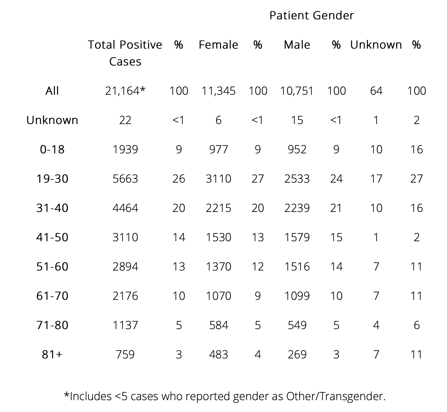 Total of Positive COVID-19 Cases By Age and Gender