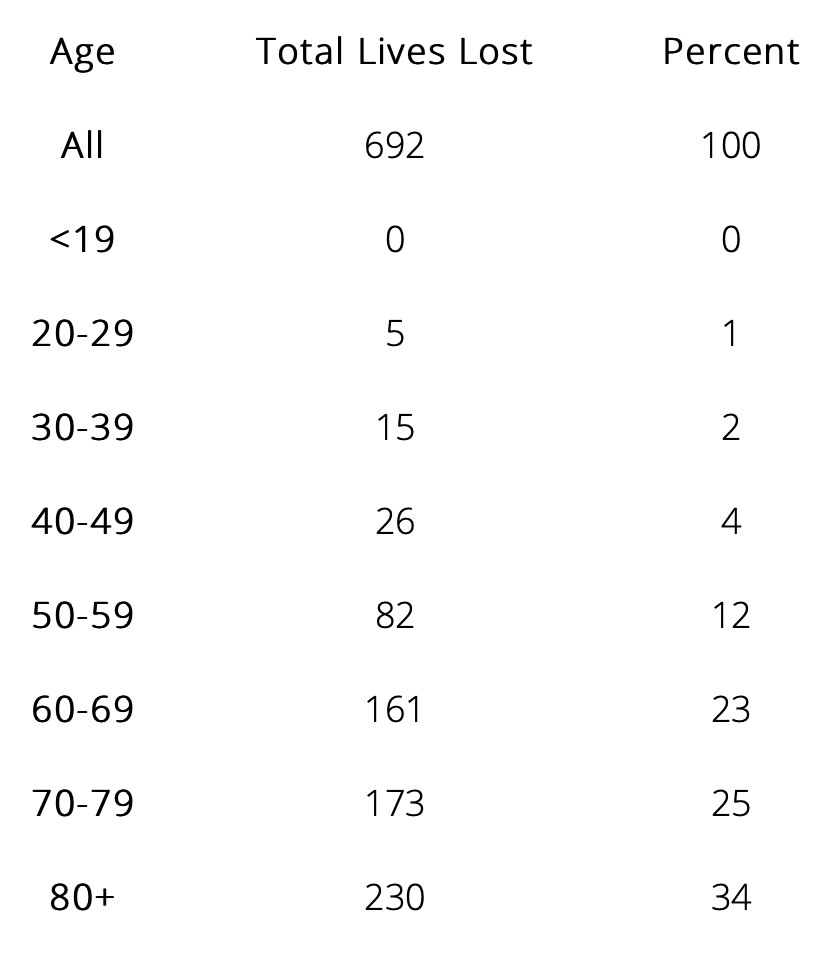 Total of Positive COVID-19 Deaths By Age