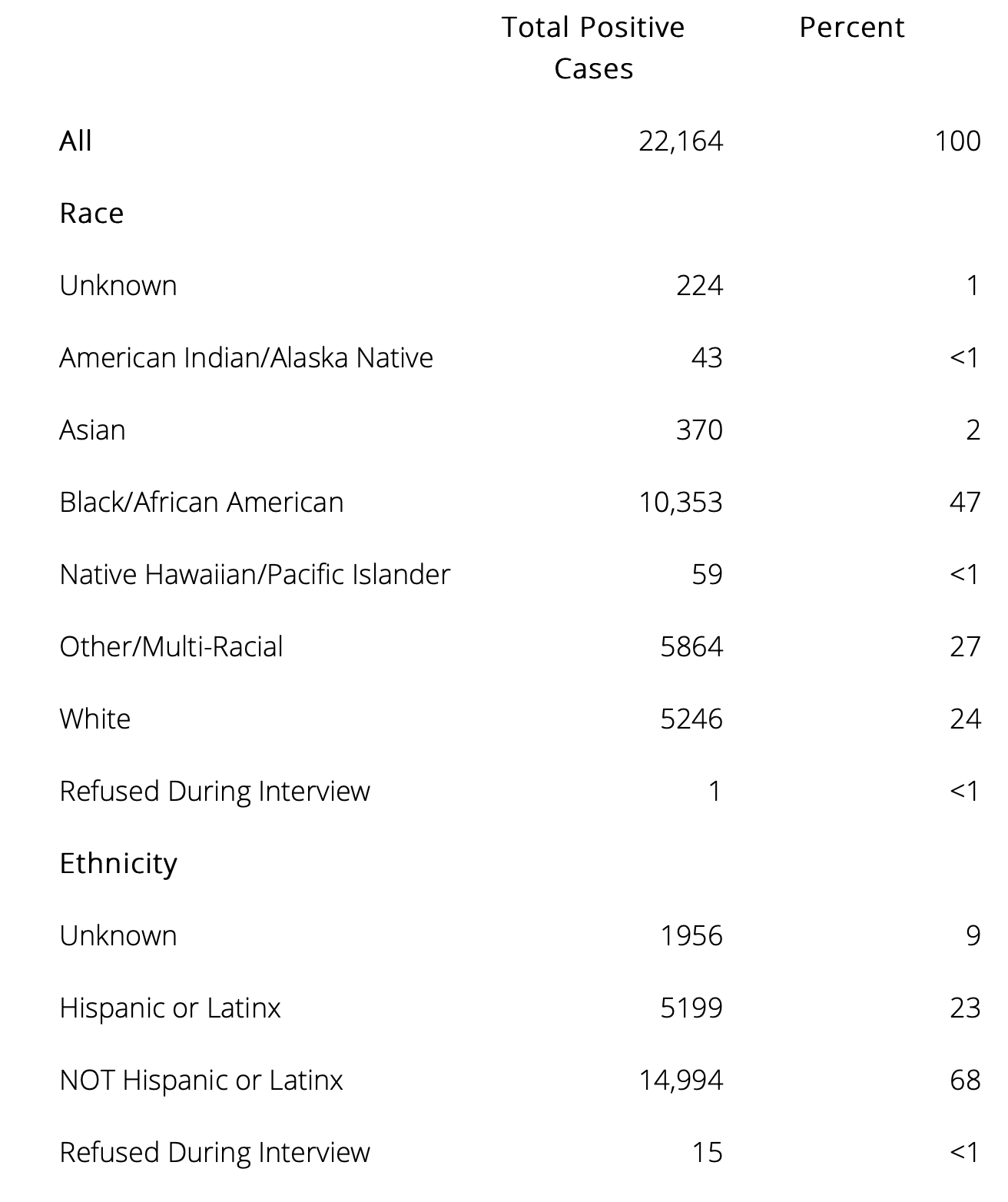 Total of Positive COVID-19 Cases By Race