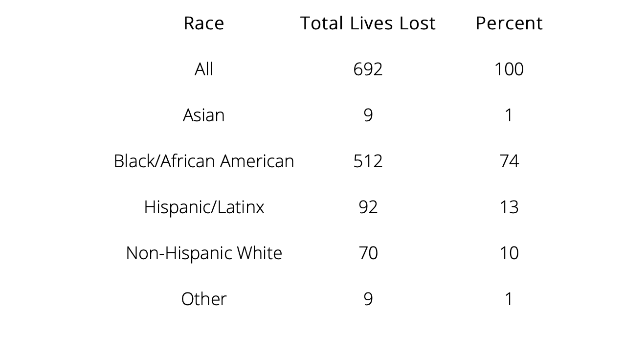 Total of Positive COVID-19 Deaths By Race