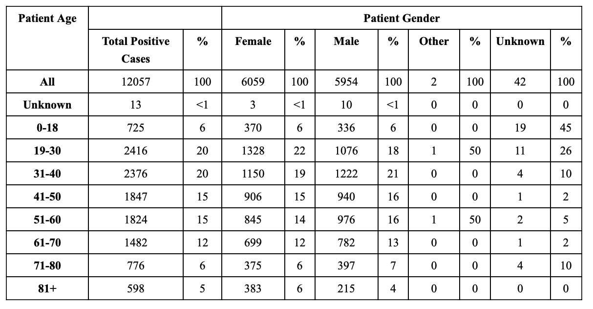 COVID-19 Cases By Age And Gender