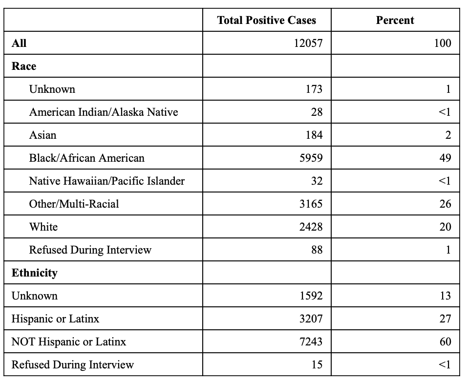 Total of Positive COVID-19 Cases By Race