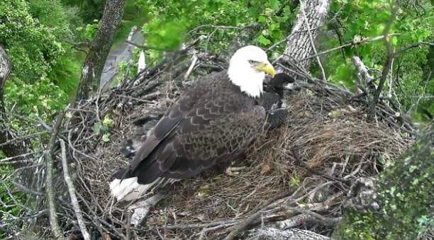 But that was a few weeks ago. Now it looks like strange neighbors have taken over the bald eagle nest. The eaglets are bigger, with dark brown feathers behind a dark beak with just a hint of yellow around the mouth. A drive-by observer would understandably believe they'd stumbled upon the wrong webcam altogether.