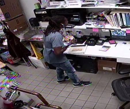 Police released video of the alleged crime, which happened on July 11 and shows a man wearing earbuds walking into an establishment in the 1800 block of 14th Street NW -- the establishment was not identified but appears to be a Peet's coffee shop -- and then walking into a back office, pilfering sandwiches and a cell phone, according to the police report.