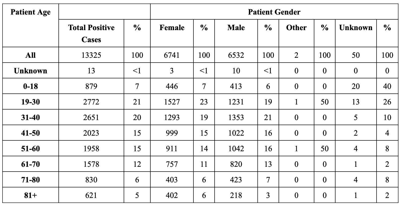 COVID-19 Cases By Age And Gender