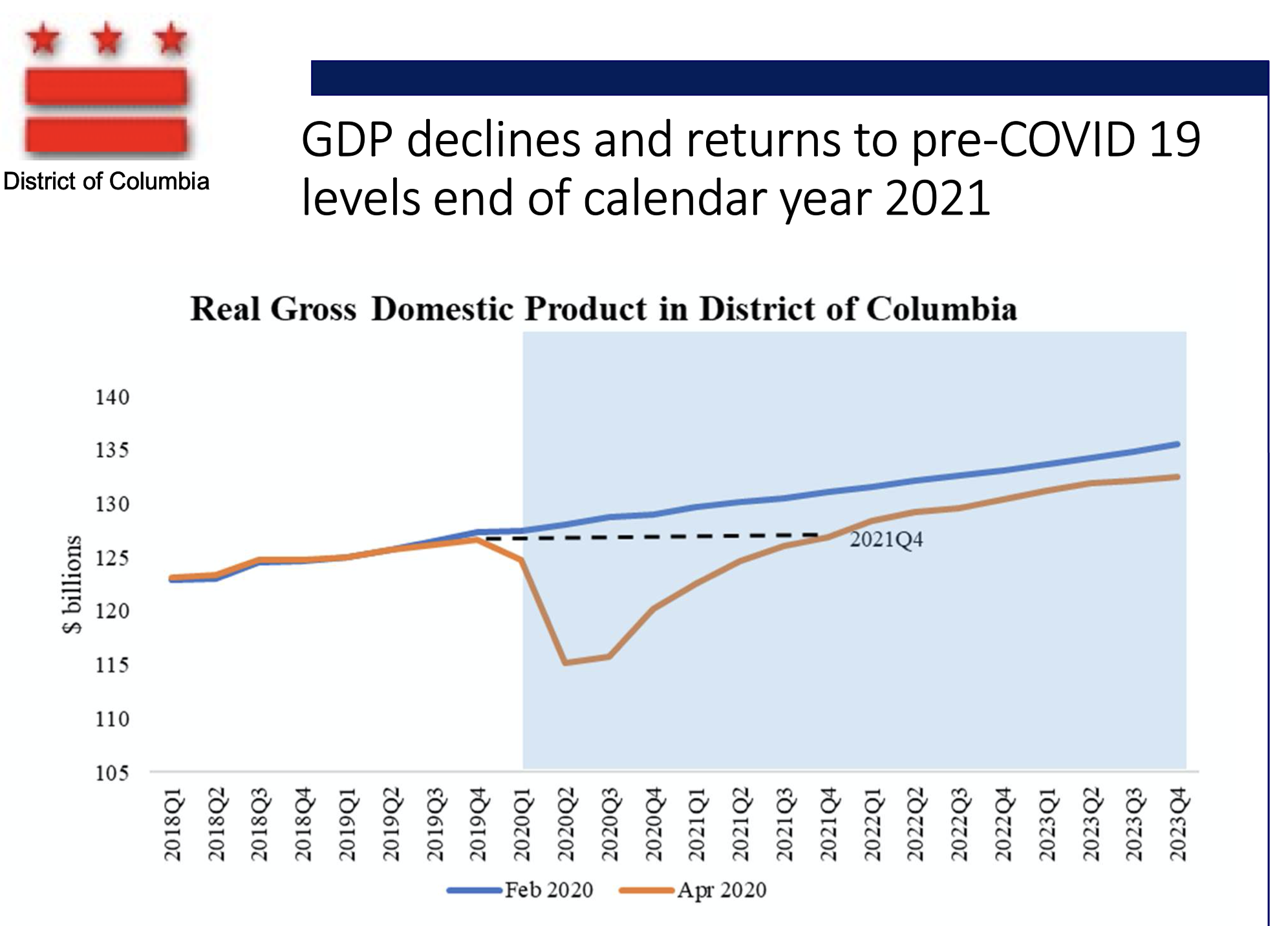 DeWitt's estimates will help inform Bowser's revised FY 2021 Budget Proposal, which she will be submitting to the D.C. Council on May 12. The Council will solicit public comment and continue to meet virtually through the budget process, and take its first budget vote at the end of June.