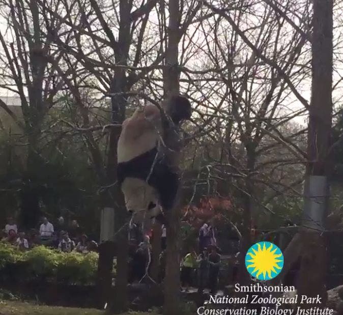 Giant Panda Tian Tian Plays in a Tree at National Zoo in DC (Video)