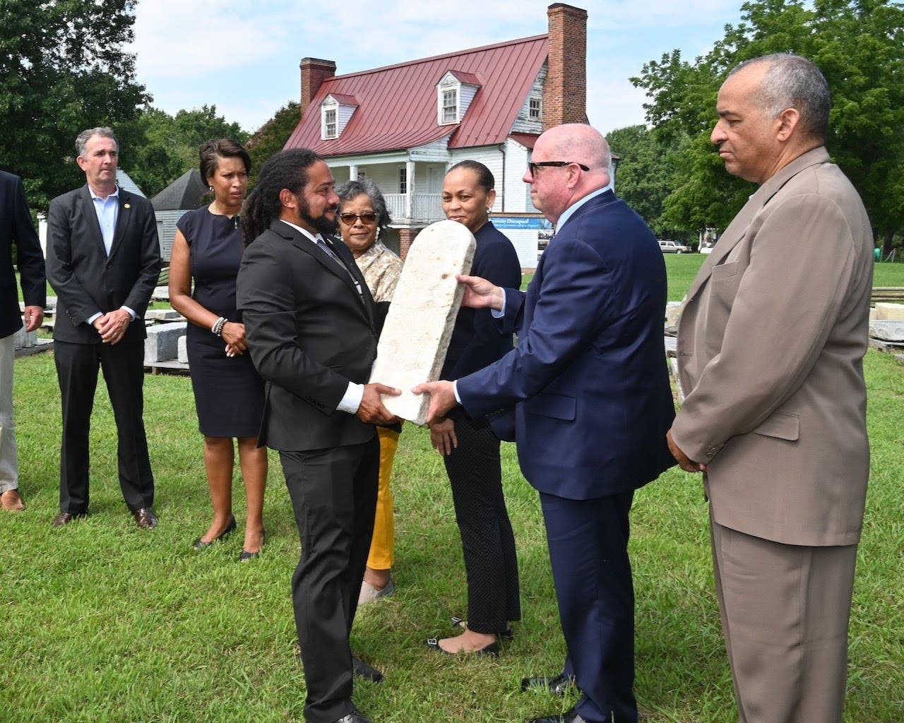 On Monday, Northam, along with Maryland Gov. Larry Hogan and D.C. Mayor Muriel Bowser, attended a ceremony at Caledon State Park for the official transfer of 55 historic African American headstones to National Harmony Memorial Park in Prince George’s County.