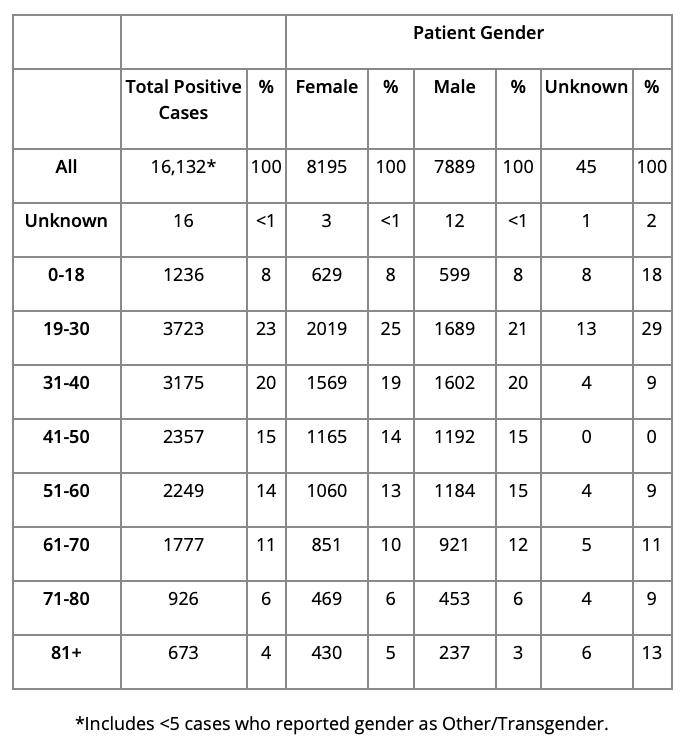Total of Positive COVID-19 Cases By Age and Gender
