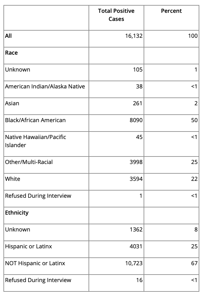 Total of Positive COVID-19 Cases By Race