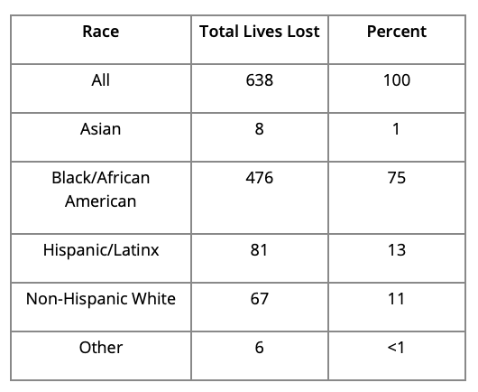Total of Positive COVID-19 Deaths By Race