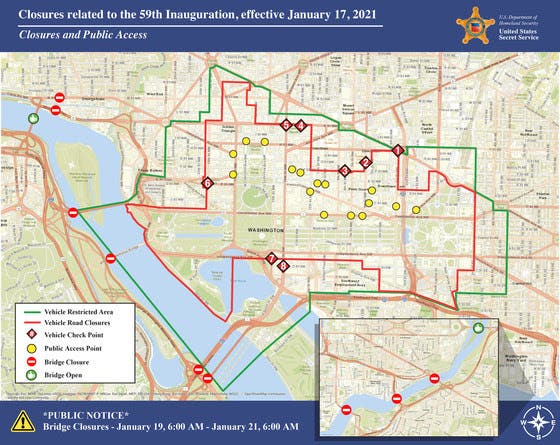 Updated (Jan. 17, 12:15 p.m.): This story was updated with a map showing all the closures in downtown Washington, D.C. during the inauguration.