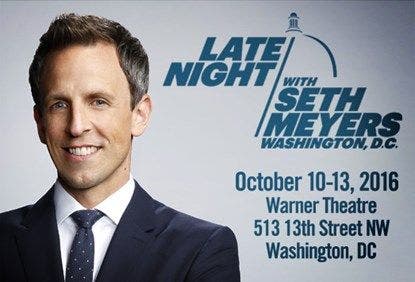 WASHINGTON, DC — Late night host Seth Meyers has brought his show to Washington, D.C. this week, and tickets are still available if you want to attend the live taping.