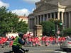 Three hours before the parade’s 11 a.m. start, there are thousands of red-clad fans on the National Mall to witness the march of the Caps, who are the 2018 Stanley Cup champions after defeating the Las Vegas Golden Knights 4 games to 1 in the Finals last week.