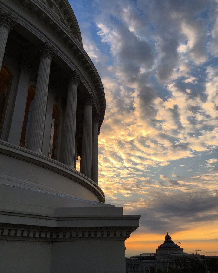 "Sunrise view this morning from the now SCAFFOLD FREE Dome," the AoC said in a caption to the above picture. "Restoration work continues."