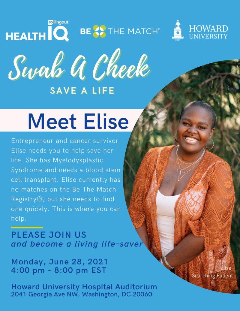 WASHINGTON, DC — Howard University, together with Rolling Out Health IQ and Be The Match, is hosting a blood stem cell drive event on Monday, June 28 to support Elise Smith, owner of Winnie’s Bakery in Columbia, Maryland.