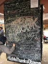 The public is able to write anything they want on the 7-foot-tall board, and it soon filled up with messages welcoming Obama and thanking him for all he's done in eight years in office.