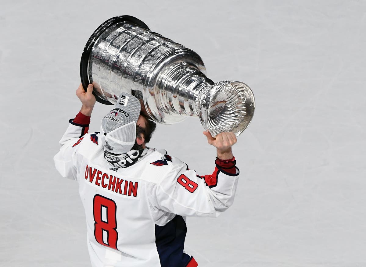 LAS VEGAS, NV - JUNE 07: Alex Ovechkin #8 of the Washington Capitals kisses the Stanley Cup after the team's 4-3 win over the Vegas Golden Knights in Game Five of the 2018 NHL Stanley Cup Final at T-Mobile Arena on June 7, 2018 in Las Vegas, Nevada. (Photo by Ethan Miller/Getty Images)
