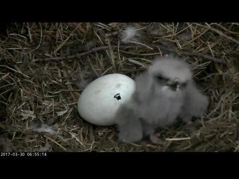 The next big step to watch for is the eaglet’s first feeding by its parents.