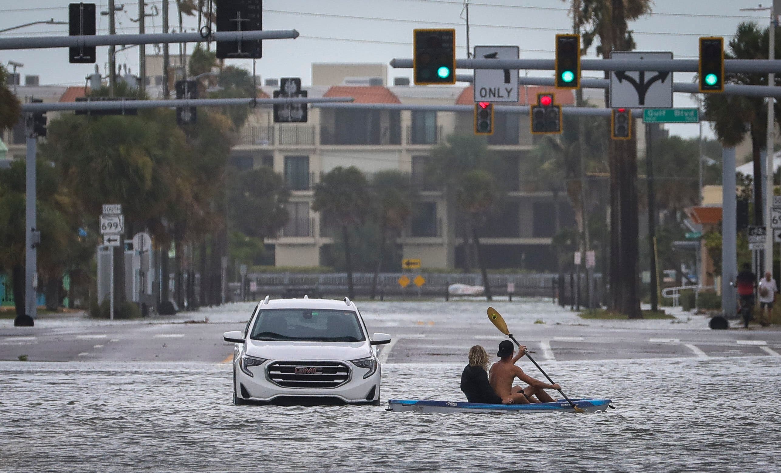 Along the coast, some homes were submerged to near their rooftops and structures crumpled. As the eye moved inland, destructive winds shredded signs and sent sheet metal flying. Video and photos shared on the City of Cedar Key's Facebook page showed debris littering roads, trees blocking roads and storm surge enveloping roads. Storm surge there reached 8.9 feet, surpassing the 5.99 feet record set in 2016 from Hurricane Hermine, CNN reported.