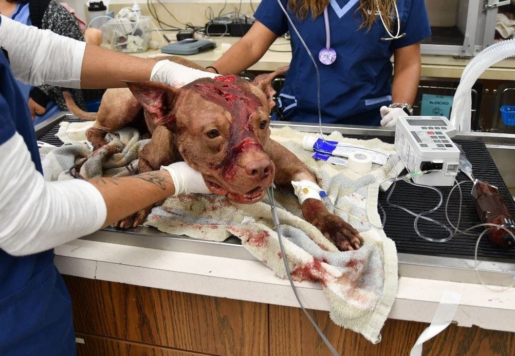 "Officers heard a dog cry come from within the suitcase," Grossman explained. "Inside the suitcase, a pit bull was found with severe lacerations to the top of his head and body."