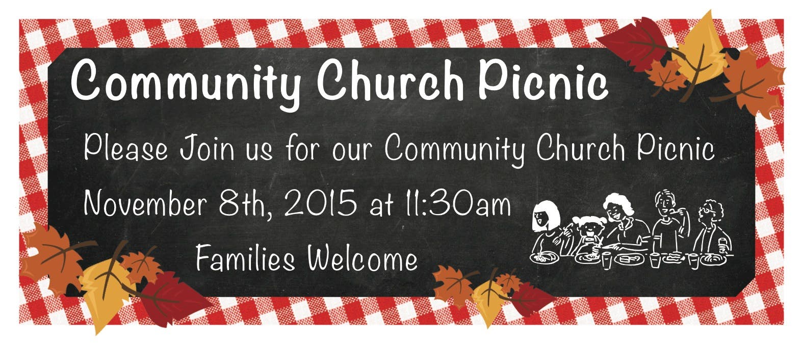 Join us Sunday November 8th at 11:30am for our Pig Roast / Community Church Picnic. Everyone is welcome to attend.