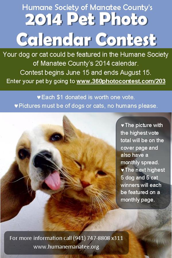 featured in the Humane Society of Manatee County’s 2014 calendar. Contest