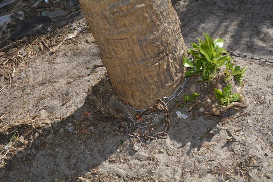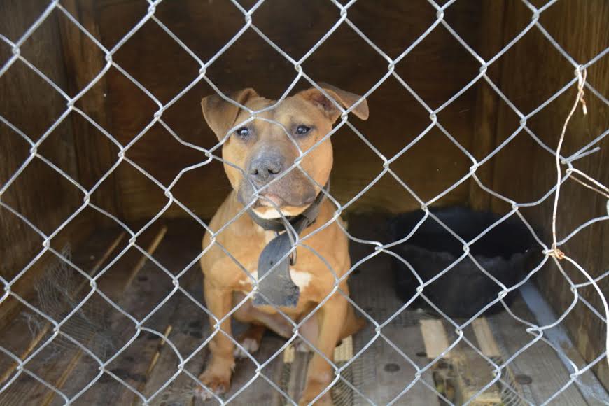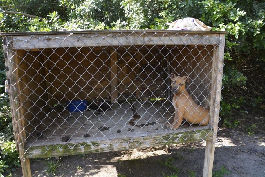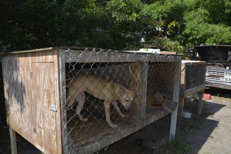 “One of the smaller dogs had injuries to his head, ear and tail and was tethered to a tree by a heavy chain,” an email from the police department said. “None of the dogs had food. Neither electricity nor running water is connected to the house where these dogs were caged.”