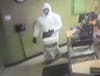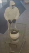 The suspect deputies are looking for is described as a black male with a medium complexion. He stands about 5 feet, 10 inches in height and weighs an estimated 200 pounds. He was last seen wearing a painter’s outfit that covered his arms, leg and head. He also had on gloves, shoe booties and a blue mask, the sheriff’s office said. He was carrying a medium-sized maroon bag, which contained the handgun.