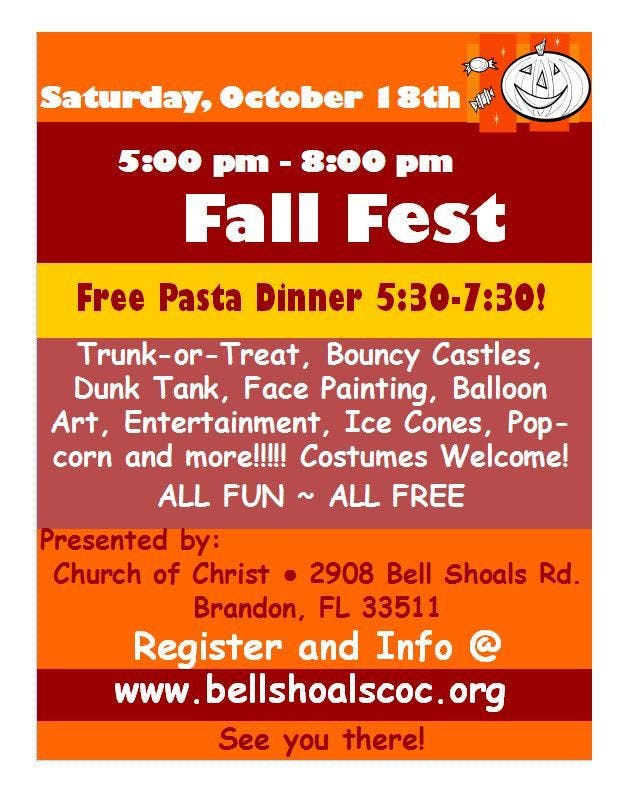 Fall Fest ~ Saturday, Oct 18th 5-8 pm in Brandon ~ ALL FUN, ALL FREE!
