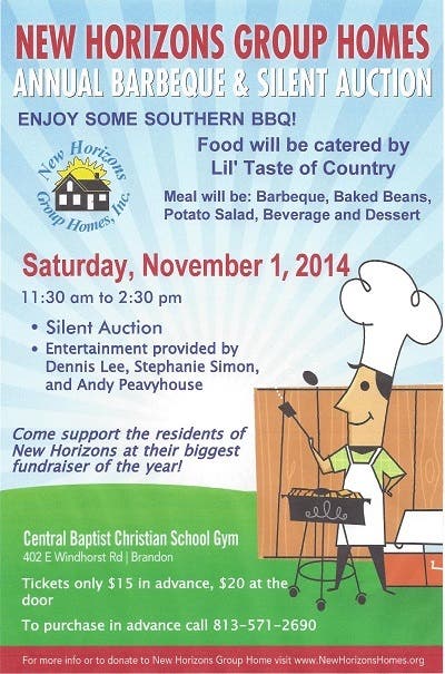 The barbeque will take place from 11:30 a.m. to 2:30 p.m. at the Central Baptist Christian School gymnasium, 402 E. Windhorst Rd., Brandon.