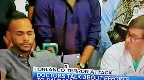 Orlando, FL — Sitting in a wheelchair in the safety of Orlando Regional Medical Center on Tuesday Angel Colon described the horror he witnessed when shots rang out in a crowded nightclub early Sunday morning.