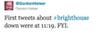 "First tweets about #brighthouse down were at 11:19. FYI," @gordonhelser tweeted at 12:43 p.m.
