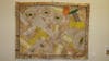 Their collaborative art, "Surveying Paradise" is a screen printed, cotton mural, printed with stamps and found objects.