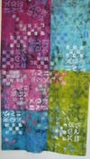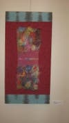 - "Kaboom", 2010, Bonnie Bowman, hand-dyed silk, with soy wax resist, screen printed, painted and stamped with found objects