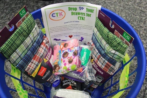 The new skivvies will be distributed to kids in need following the drive.