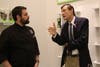 Le Bouquet by Francis co-founder Fabien Payronnet congratulates Nikky Yang who won a basket of fine chocolates during the opening celebration for the new French-inspired chocolate shop located at Westfield Countryside Mall.