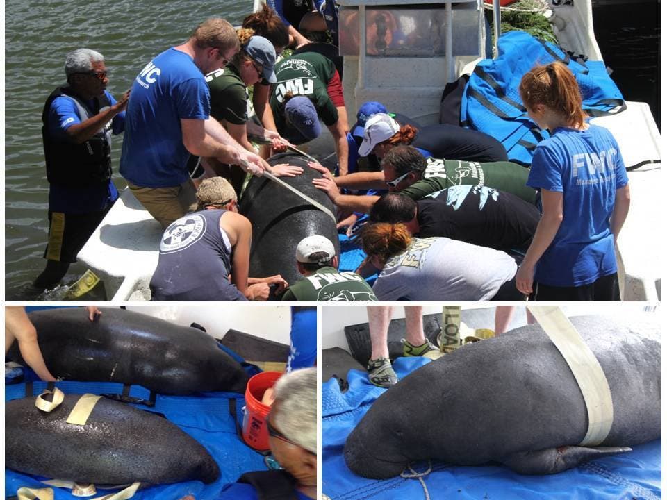 Photo Credit: An injured manatee is secured for transport following a Wednesday rescue. Photo courtesy of the Florida Fish and Wildlife Conservation Commission.