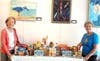 Shown are Dottie Choate and Rosemary Stinger, President, with some of the food items that were donated.