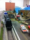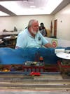 Some of the trains used on the set are the same ones he has played with for more than 50 years. Some items he found to help make the set more realistic include fish tank pumps and special misters to help with water scenes and fog effects.
