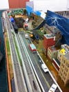 There is a bit of humor and the macabre that make up the roomful of model trains set up at the Main Library through Saturday.