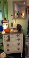 Chest of drawers/ Lingene chest, off white with gold ..16"x28"x39" also have matching mirror for $135