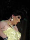 The fiercely beautiful and talented Naomi Wynters first wowed audience members in her daring gold body suit while leading a boy on a chain leash, and then took the crowd's breath away in her long, racy backless, black diamond evening gown, only to clinch the Miss Mardi Gras title during the talent portion.