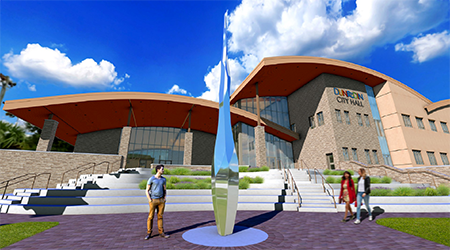 The new city hall will be a community facility with public spaces and access to government in the commission chambers. The main lobby will offer a one-stop customer service area providing residents convenient access to frequently requested services. It will include a two-story administrative wing and a single-story commission chamber.