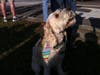 Pauline Kerr, 47, held signs with her daughter and cockapoo Mr. Griffin.