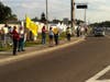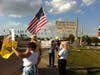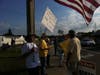 Abe Munday, 59, a construction worker, held a sign and the American flag. He said he was out there to protest public employee's pensions.