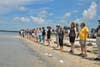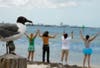 The group in Dunedin stood largely in silent meditation for 15 minutes from noon to 12:15 p.m., also posing for Hands Across the Sand's helicopter aerial photos scheduled beforehand.