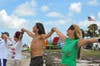 When invited to join, a nearby family of beachgoers declined, but watched closely.
