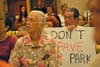 About a dozen demonstrators gathered, bearing posters, outside the Nature Center, but members of the Honeymoon Island State Park Advisory group clutched signs and various trinkets, as they expressed environmental, management and financial concerns to state Department of Environmental Protection officials.