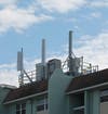 Those cell towers you see around the bay area will in all likelihood survive all but the worst Category 4 or 5 storms, but if you look closely at the pictures you will see many cellular antenna arrays mounted on roof tops of tall and some not so tall buildings.